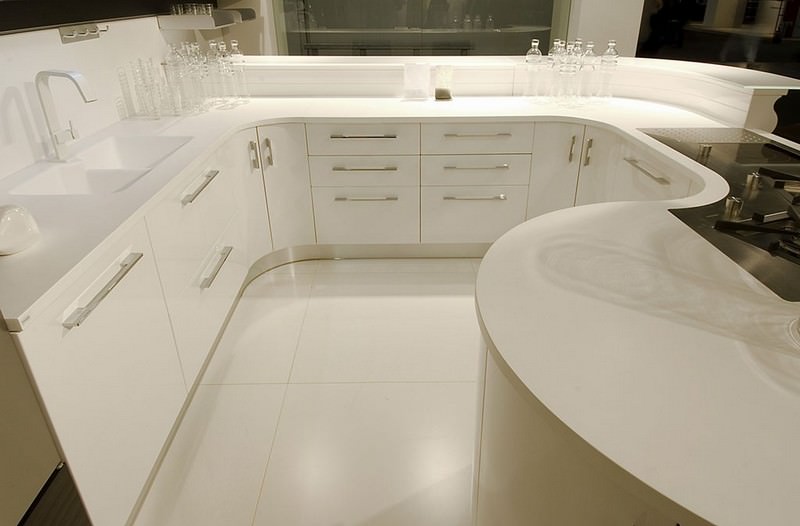 - Hi-Macs rất cứng, bề mặt không có lỗ rỗng nhưng lại có khả năng uốn cong.